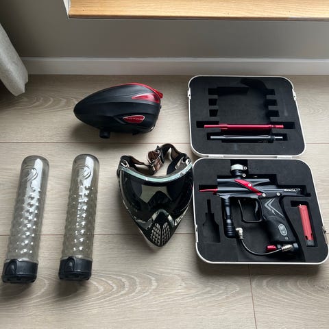 Selger et komplett paintballsett med alt du trenger for å komme i gang. Utstyret er lite brukt og godt vedlikeholdt. Alt fungerer som det skal.