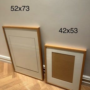 To rammer i lys eik 10x15 og to rammer i lyst tre, bjørk? Selges samlet