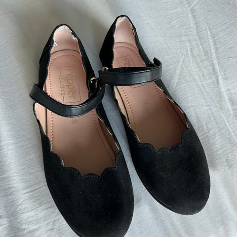 Pepper jentesko i størrelse 36, farge svart. Skoene har en enkel og klassisk design med reim over vristen. De er laget for jenter og passer til både hverdagsbruk og formelle anledninger.