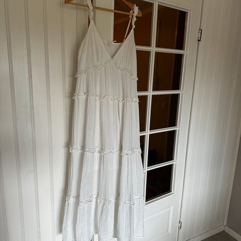 Nydelig hvit lang sommerkjole. Ny m lappen på. Str 42 og normal i str. Selges for kun kr 100