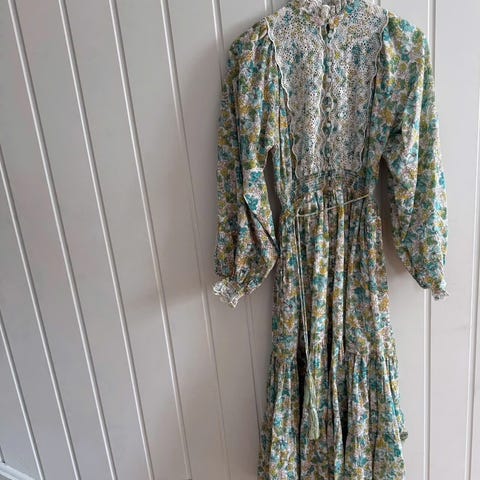 Ubrukt ByTiMo cotton slub midi dress. Str s. Fargen rose combo. Blå med blomster. Kan knytes i midja og har vaffelsøm der. Romslig i str. Halvkorte ermer. Går til midt på leggen. Butikkpris 3699. Selges 2700kr. Sendes mot porto