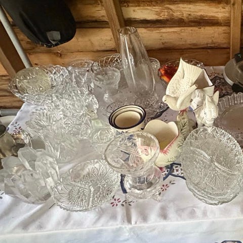 Selger div i krystall , høyde på de ulike produktene står under bildene.
