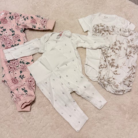 Pent brukt klespakke i blå og hvite farger fra røykfritt hjem. Diverse merker: Newbie, name it, reflex, Lindex