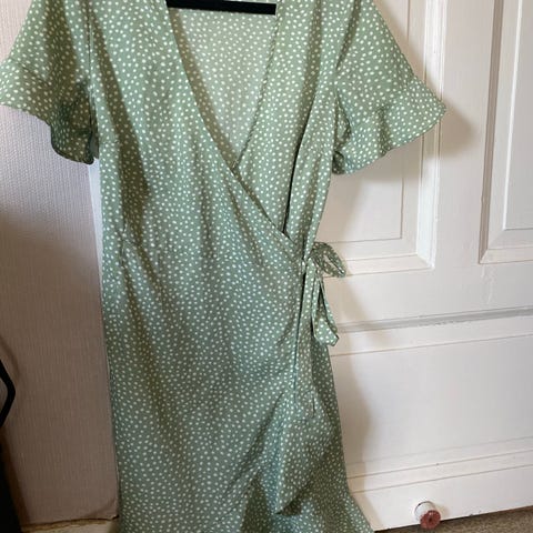 Pent brukt omslagskjole str S i nydelig grønnfarge.