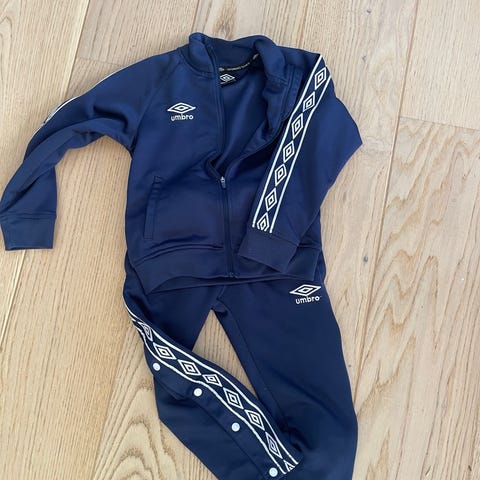 Treningstøy fra cubus, helt og pent utenom en dratt tråd på baksiden av buksa (se bilde). Umbro bukse har mer slitasje, spesielt på knær (se bilde)