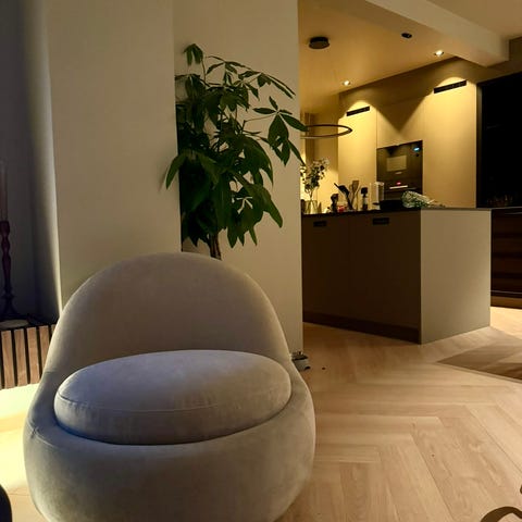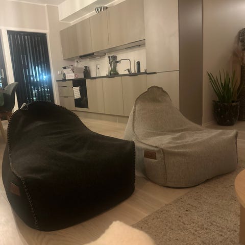 Både puff og sakkosekk er med, akkurat som på bildet.