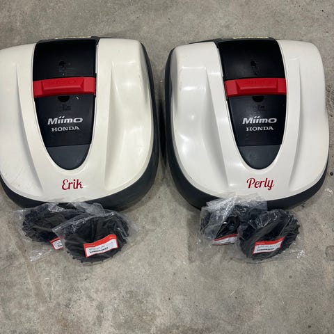 Toppmodellen fra Honda som klipper opptil 4000 m2. Pent brukt med ladeplate og strømforsyning. Nye drivhjul. 30 kniver følger med.