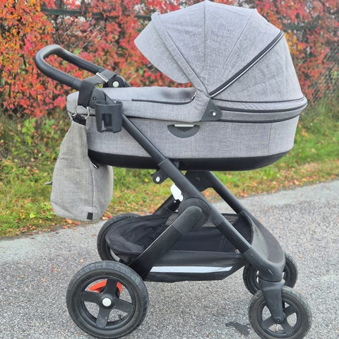 Medfølger dyp vogn del, ergonomisk sportsdel og adopter til Britax bilstol. Insektsnett med UV beskytter + regntrekk.