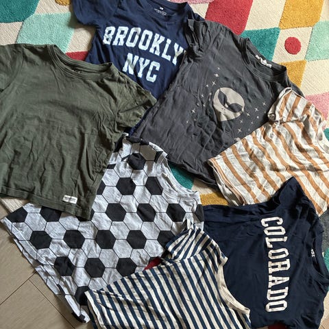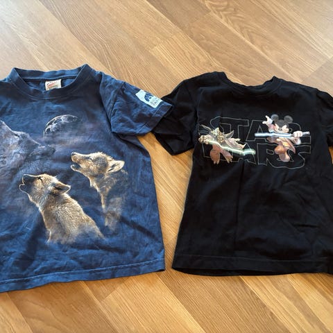 Pent brukte. Goofy-skjorten er litt mer utvasket enn de andre. De virker å være ca samme størrelse, men de er litt forskjellig merket.