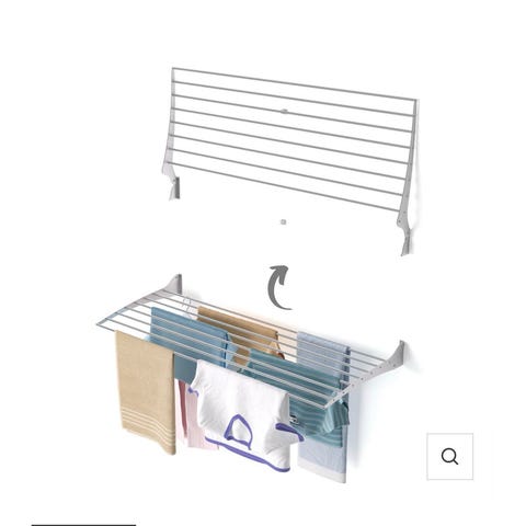 Uttrekkbart veggmontert tørkestativ fra Foxydry. Bredde 120 cm, grå. Modell: fold, lukkes oppover. Ny pris 1997,-