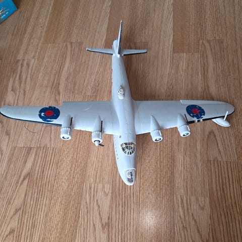 En modell av et North American B-25 Mitchell bombefly. Det sitter tre piloter i flyet.