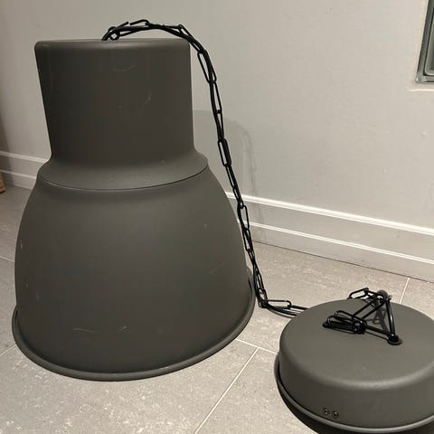 Tidløse lamper fra IKEA, to ble hengt opp noen måneder og så tatt ned igjen og satt på lager. Tredje har ikke vært pakket ut.