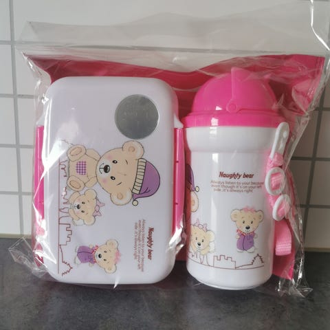 Gabby matboks helt ny. 200 kr for alt eller 100 kr for matbokser og 100 kr for drikkeflasker
