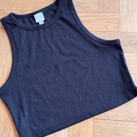 Crop-topp/Singlet i svart farge som er ubrukt. Lappen henger på. Passer til hverdagsbruk eller som en del av et lag-på-lag antrekk.