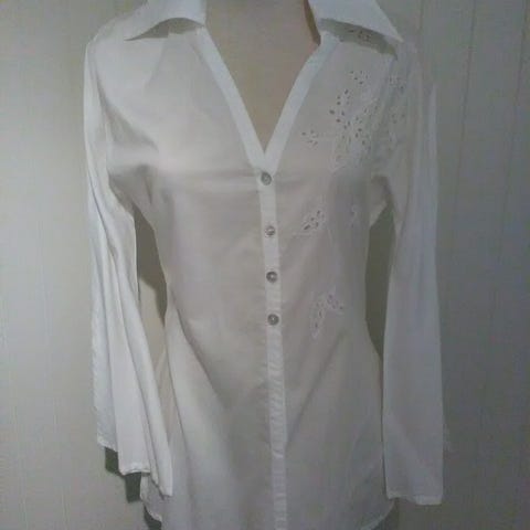 Utrolig nydelig hvit langermet blonde-bluse, helt ny med lapp. Aldri brukt.