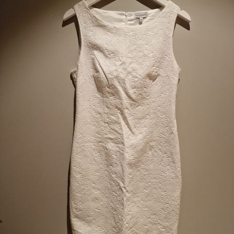 Kjole1: Nydelig helforet hvit sommerkjole. Litt innsvingt modell. 200kr