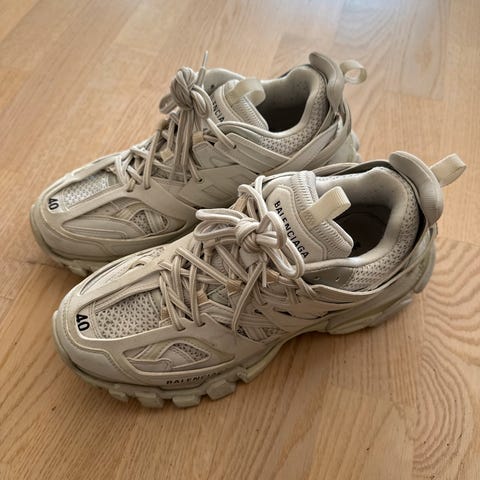 Selger et par med Balenciaga tracks, passer størrelse 41/42. Tørket lett over med klut og lunkent vann. Selges grunnet lite bruk, kvittering medfølger.