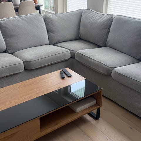 Holdt i mange år, og har mange leveår igjen. Stoffet er veldig fint, alcantara. Tåler sollys. Stoffet er slitesterkt, lett å holde rent. Har vært med på flytterunder, men fortsatt like god å sitte i. Kjøpt fra bolia for ca