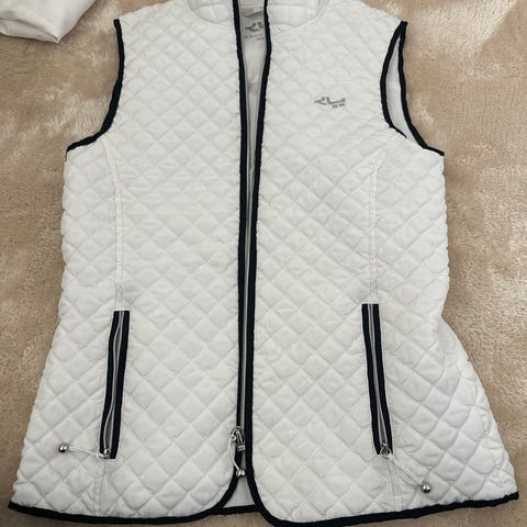 Ny dame vest i hvitt og blått detaljer i str XL. Lommer og stretch på både sider. Nypris 1499,-