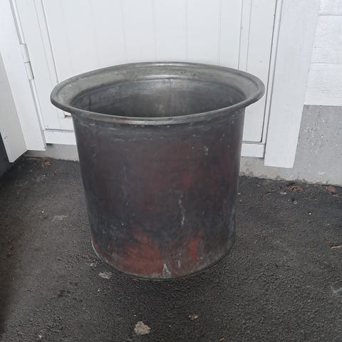 Det har vore hol i botn som er lappa. Truleg ikkje tett. Egnar seg til dekorasjon