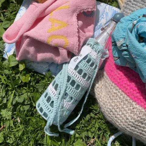 Vesken er heklet for hånd og lukkes med snøring. Den har en lang skulderreim som kan hektes av på den ene siden. Superstilig og unik veske 🌸