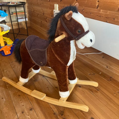 Tilstand: Eldre modell, mulig noe slark? , men med litt kjærlighet kan denne bli fin som gyngehest eller som interiør.