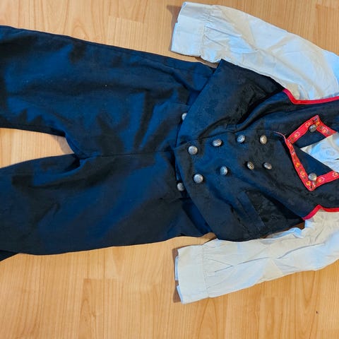 Festdrakt, skjorte, forkle og kyse fra Lindex. Pent brukt, men noe bruksslitasje forekommer.