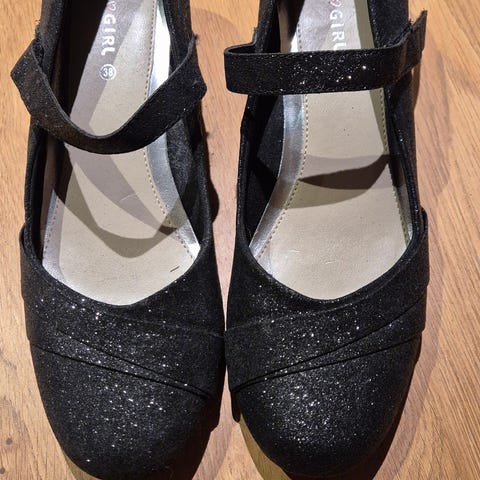 Høyhelte glitter sko str 38/39 7cm