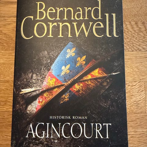 Bernard Cornwell Agincourt historisk roman. Boken er en spennende skildring av slaget ved Agincourt, kjent for sin strategiske betydning i historien. Romanen gir en dramatisk og detaljert fremstilling av hendelsene fra denne perioden. Perfekt for de som er interessert i historie og middelalderens krigføring.