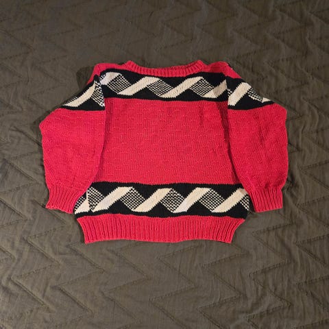 Hjemmestrikket genser, strikket i drops air. Kan passe ca 6-7 år. Lengde 53 cm, bredde 38 cm.