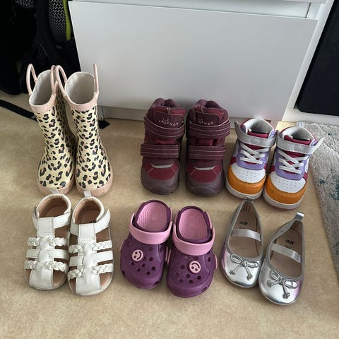 6 par sko i str 22 selges samlet til en billig penge! Skoene er i god stand!