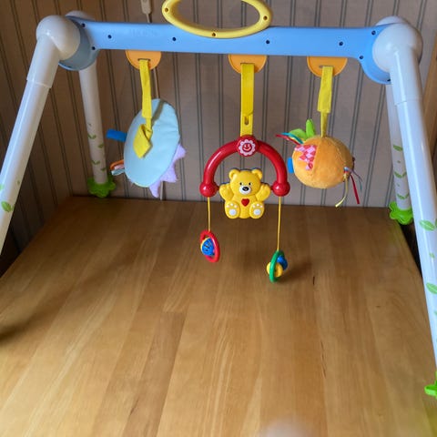 Babygym med beroligende musikk. Ballen roterer også med musikk.