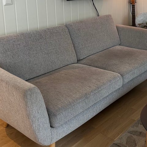 Godt brukt sofa, gis bort ved henting snarest. Ødelagt av katt. Opptrekkingsobjekt. Stopp helt inntakt