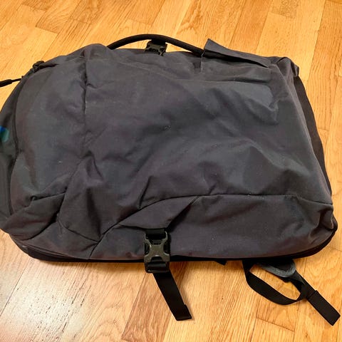 Pent brukt, lite brukt. Buet panel på forsiden. Har masse glidelåslommer for oppbevaring utvendig. Se bilder for detaljer og målinger. Tror den rommer ca 20-25 liter. Ingen kvittering.