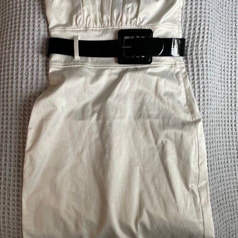 Minikjole i fin kremhvit farge, med lommer og glidelås i siden. Kun brukt ved én anledning.