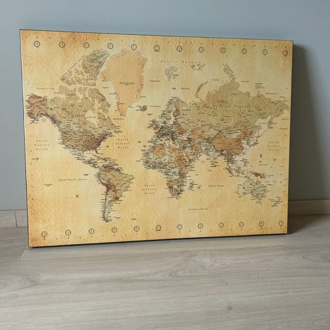 En utrolig stilig bilde på lerret! Ble kjøpt for noen år siden. Det har kommet vann på det, så det er noe blå maling som har rent (se bilde) men det synes nesten ikke. 90 x 60cm