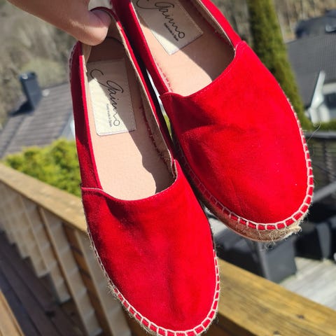 Gaimo Sarry er en espadrill i semsket skinn med plattformsåle på 40 mm. Modellen har en supermyk innersåle, for maksimal komfort. Laget i Spania. Modellen har semsket brunt skinn. Denne varianten i camel farge ble raskt utsolgt.