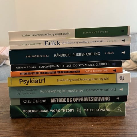 Alle bøkene til hele bachelorløpet i sosialt arbeid på UiA