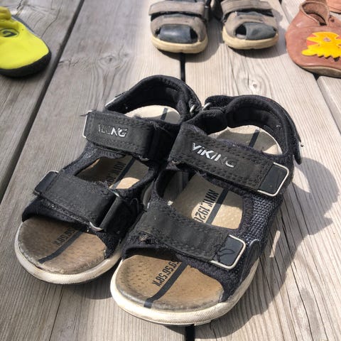 Sandaler til barnehagestart. 100 for røde og 50 for sorte.