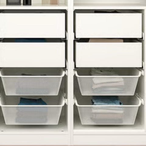 Selger en komplett og fleksibel oppbevaringsløsning fra IKEA sitt BOAXEL-system, perfekt til soverom, garderobe eller vaskerom.