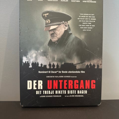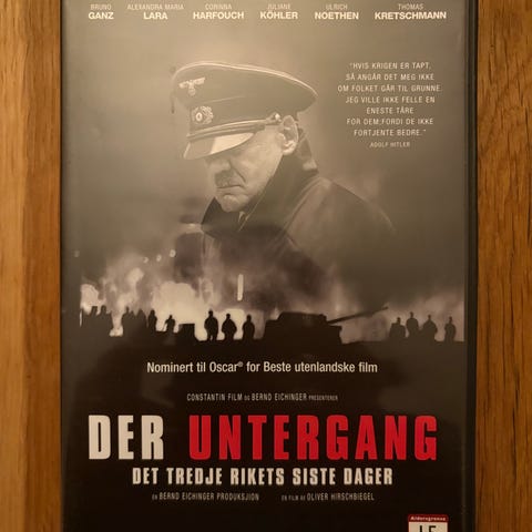 "Der Untergang: Det tredje rikes siste dager" fra 2004 på DVD med norsk tekst. Spesialversjon med 2 disker og mye ekstramateriale.