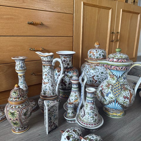 Dette er et dekorativt og tidstypisk stykke keramikkhistorie fra rivieraen – og et lite glimt av den kunstneriske friheten og lekenheten som preget «Picasso-bølgen».