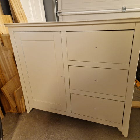 Brukt hvit kommode med 10 skuffer selges. Har vært brukt på et kjøkken. Noen bruksmerker, men generelt i veldig god stand. Alle skuffer fungerer helt som om de var ny.