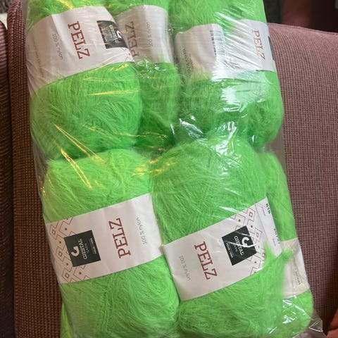 Selger 5 nøster ordinært garn- Tynn kidsilk Erle a 25g - 287m, skarp grønn. Ordinært koster et nøste 125kr . Jeg selger 5 nøster for 400kr.