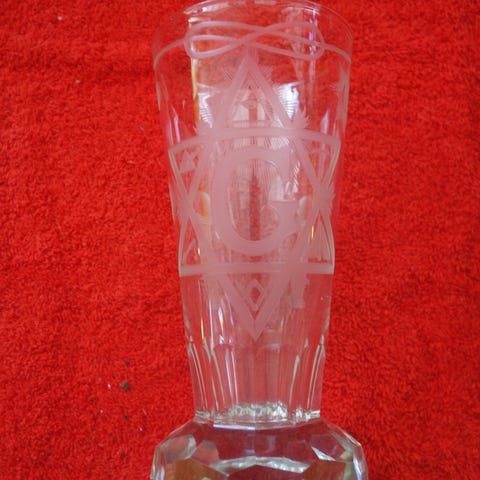 Frimurerglass høyde 15 cm, diameter 8 cm. Tysk Römerkanon.