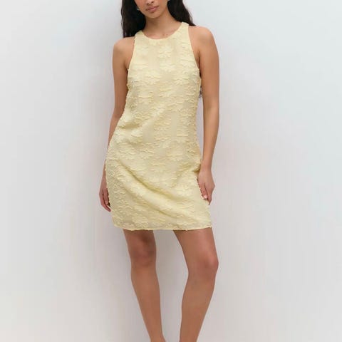 Kjempesøt sommerslig kjole i lys gul farge, størrelse L fra Ginatricot. Ny pris er 499kr, kjolen er utsolgt på nett og i butikk.
