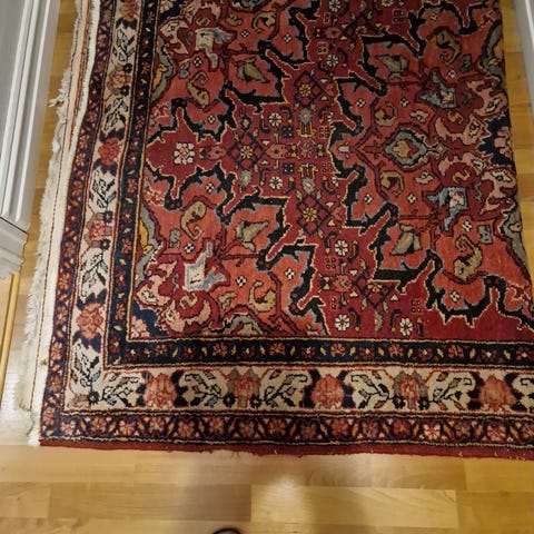 Stort teppe i ulike nyanser. Sort, /gullbeige, rødt etc.