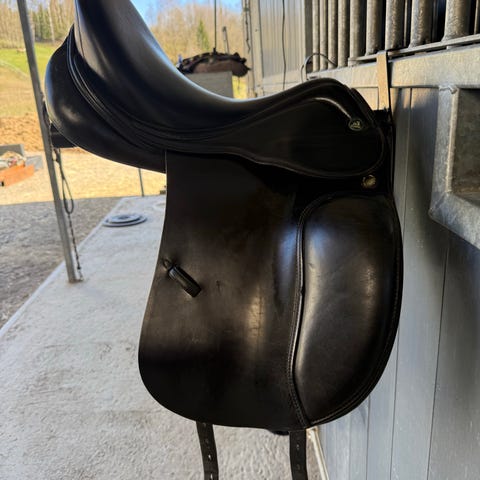Dressursal av god kvalitet. Dypt sete med store knestøtter. Særdeles god sal å ri i.