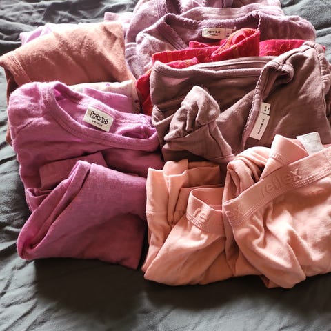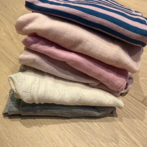 Noen plagg er godt brukte (se bilder) og noen plagg er pent brukt uten flekker, hull.