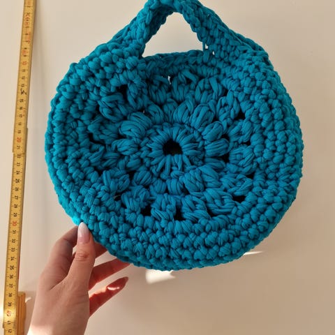 Heklet pose/pouch perfekt til å ha småting i enten hjemme eller i veska di - lipgloss, airpods, D&D-terninger osv
